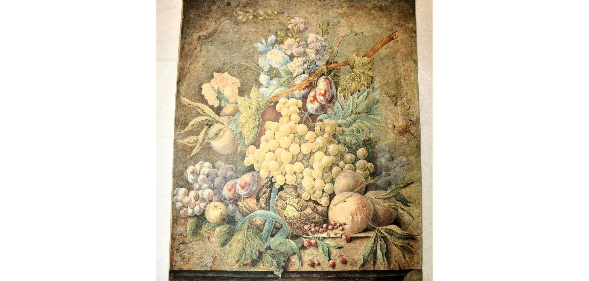 Замечательная красивейшая акварель в - стиле старых голландцев- была в реставрации в нашей мастерской. Акварель была сдублирована на макулатурный коричневый картон. На обратной стороне наклейка с выходными данными. Владелец очень серьезно относится к своей коллекции и понимал, что вредные вещества из макулатурного картона вредят акварели, и впоследствии это приведет к пожелтению и ветхости произведения. Конечно, решил перенести акварель на реставрационную основу с нейтральным ph. Было принято решение послойно снимать картон скальпелем, чтобы не подвергать произведение увлажнению. Расслоение заняло более месяца времени. Попутно раскрыли карандашную надпись, которая, к сожалению, не представляла никого интереса, ни исторического, ни культурного. Мы сдублировали акварель на новую основу, и вернули акварель владельцу.